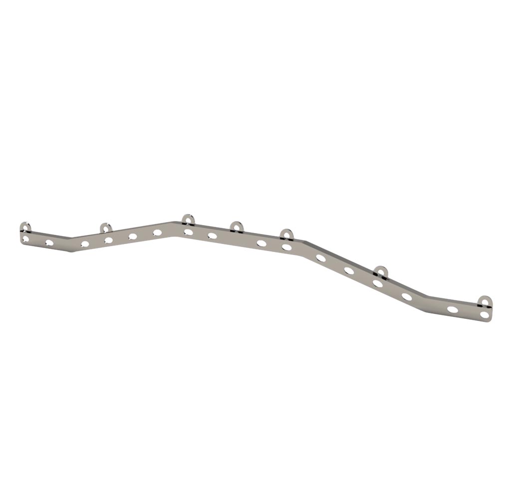 Fabricada em aço inoxidável 304, a barra garante alta durabilidade, resistência à corrosão e excelente acabamento. Possui uma argola central para fácil encaixe em mosquetões de máquinas, e vários furos ovais para encaixe das manoplas adequadas para seu treino, tornando-a compatível com crossovers, pulley, cabos e polias.