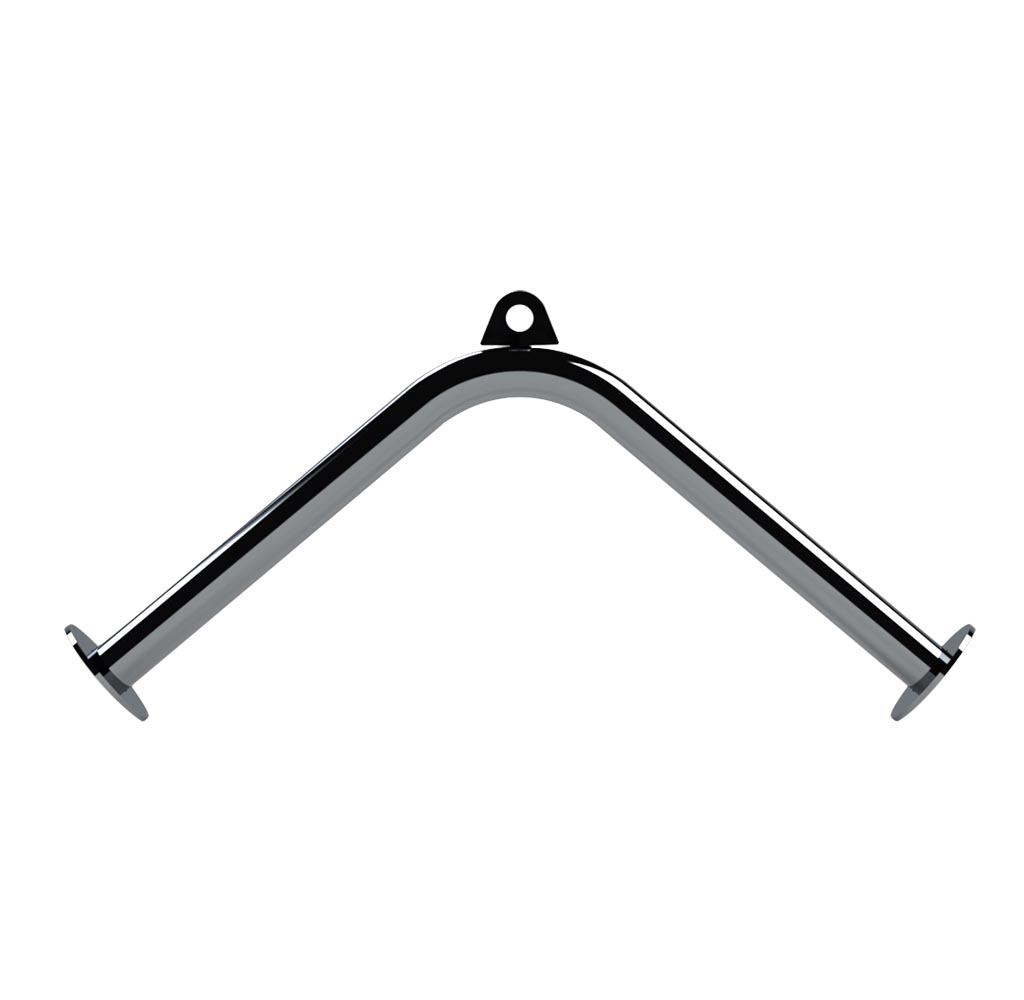 Essa é uma barra multiuso para academias, com um formato angulado em V, permitindo uma variação de empunhadura nos exercícios. Seu design inclinado proporciona uma pegada mais ergonômica, reduzindo a sobrecarga nas articulações e otimizando a ativação muscular especifica.