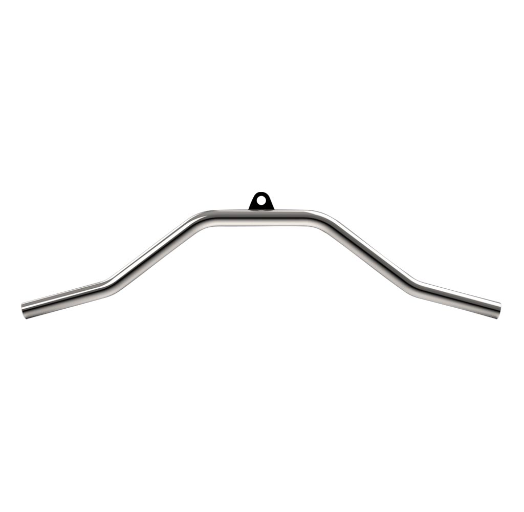Essa é uma barra multiuso para academias, com um formato angulado em V, permitindo três variações principais de empunhadura nos exercícios. Seu design inclinado proporciona uma pegada mais ergonômica, reduzindo a sobrecarga nas articulações e otimizando a ativação muscular especifica.