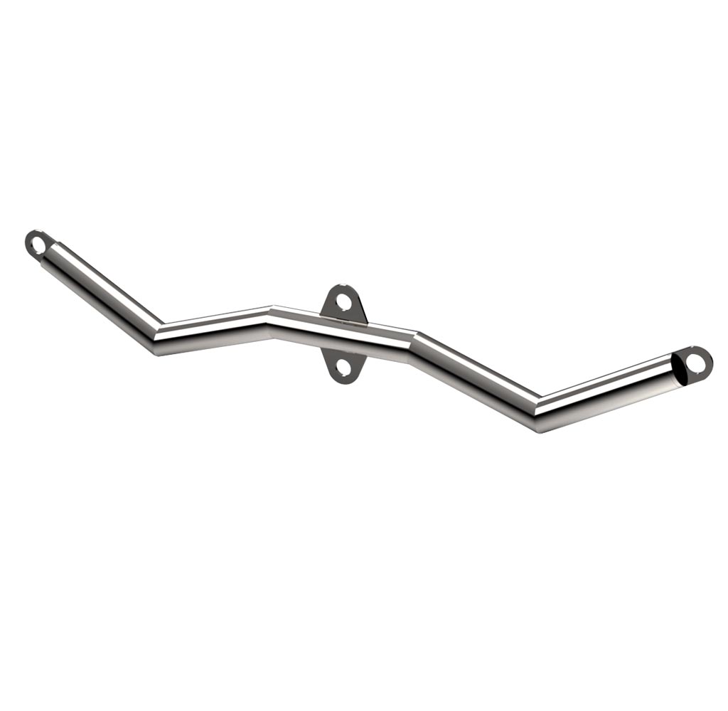 Essa é uma barra multiuso para academias, com um formato angulado em W, permitindo três variações principais de empunhadura nos exercícios. Seu design angulado proporciona uma pegada mais ergonômica, reduzindo a sobrecarga nas articulações e otimizando a ativação muscular especifica.