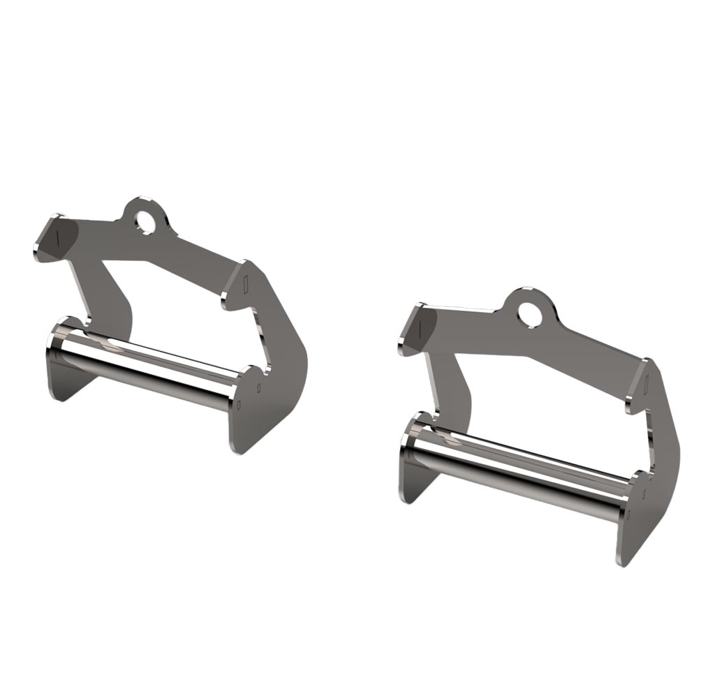 Fabricada em aço inoxidável 304, a manopla garante alta durabilidade, resistência à corrosão e excelente acabamento. Possui uma argola central para fácil encaixe em mosquetões de máquinas e barras.
